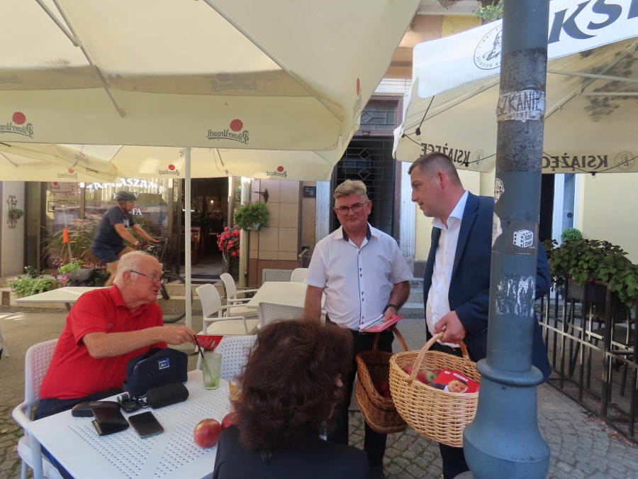 Przy  okazji  rozdawaliśmy  też  ulotki  kandydatek  i  kandydatów  Nowej Lewicy w  najbliższych  wyborach  do Sejmu .W  akacji  wzięli udział  Daniel Oliszewski - jedynka  na  liście  Nowej Lewicy w naszym okręgu, a także  sadownik z  powiatu  grójeckiego, producent między  innymi  jabłek.